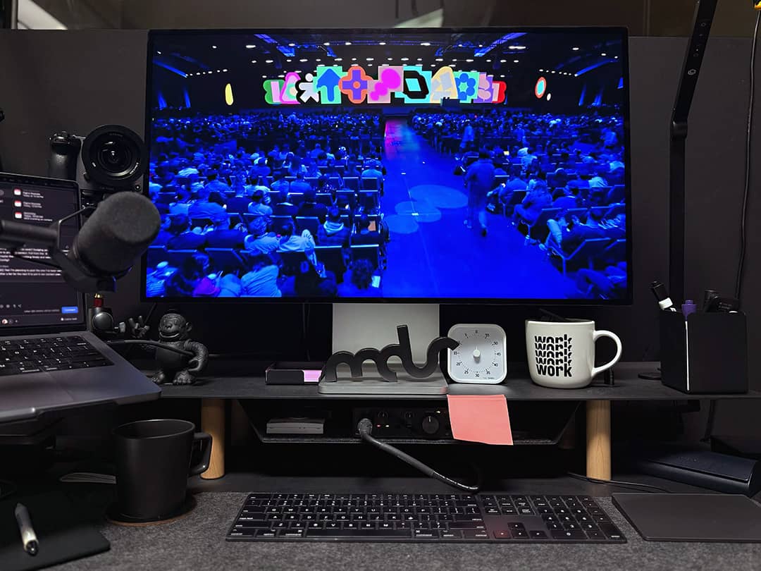 I was sitting at my desk, watching the stream across my monitor. No lights, no stage, no pressure to give a talk this year.