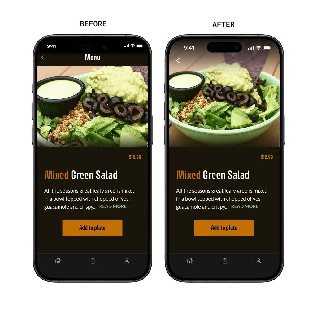 Removing those freed up visual space, letting the image expand and the entire top section breathe. Cleaner layout, stronger first impression.