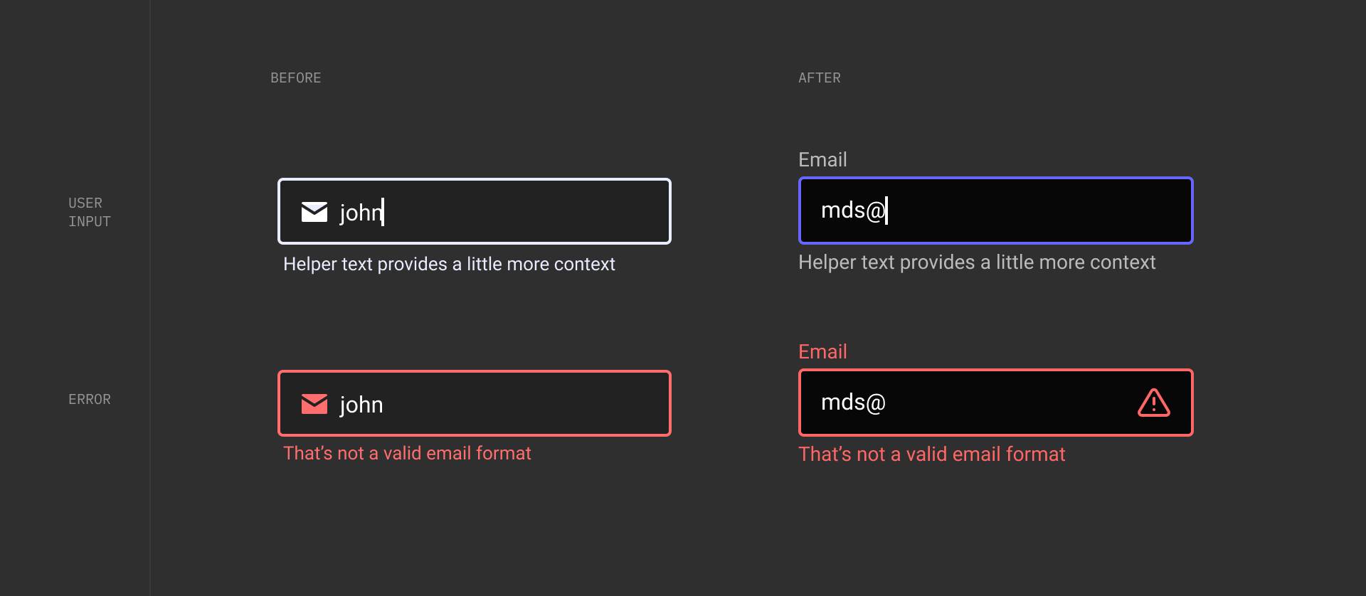 Error states? We didn’t stop at red. We added an icon. Because not everyone sees color the same, but everyone sees an icon.