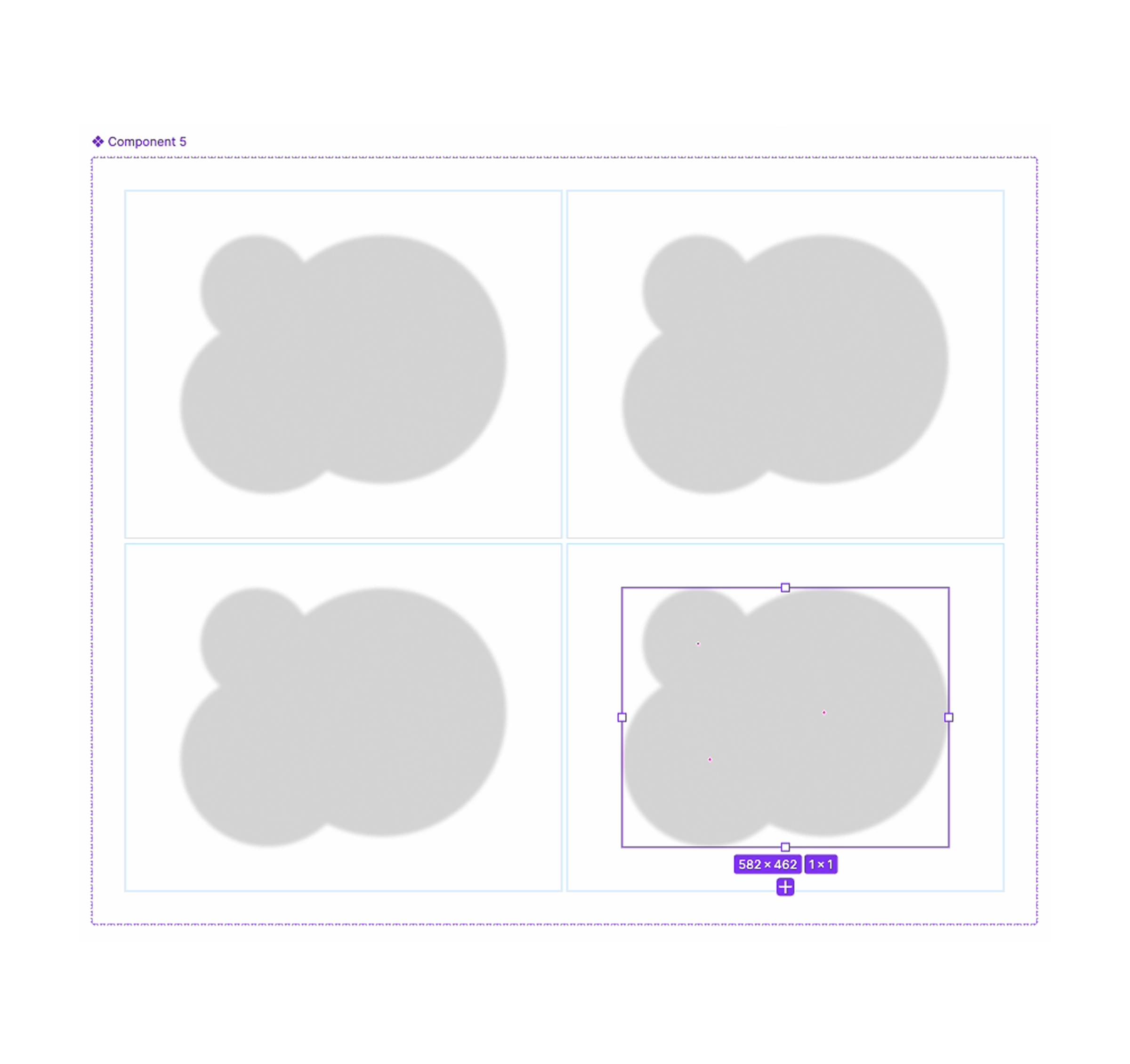 Now, if you weren’t interested in animations, you could just flatten the circles and create a mask. Or even create a union so you could adjust individual circles later. And sure, you could try to use Smart Animate to transition between one blobby shape to another, but you won’t like the effect. It’s not smooth; the static image would be better.