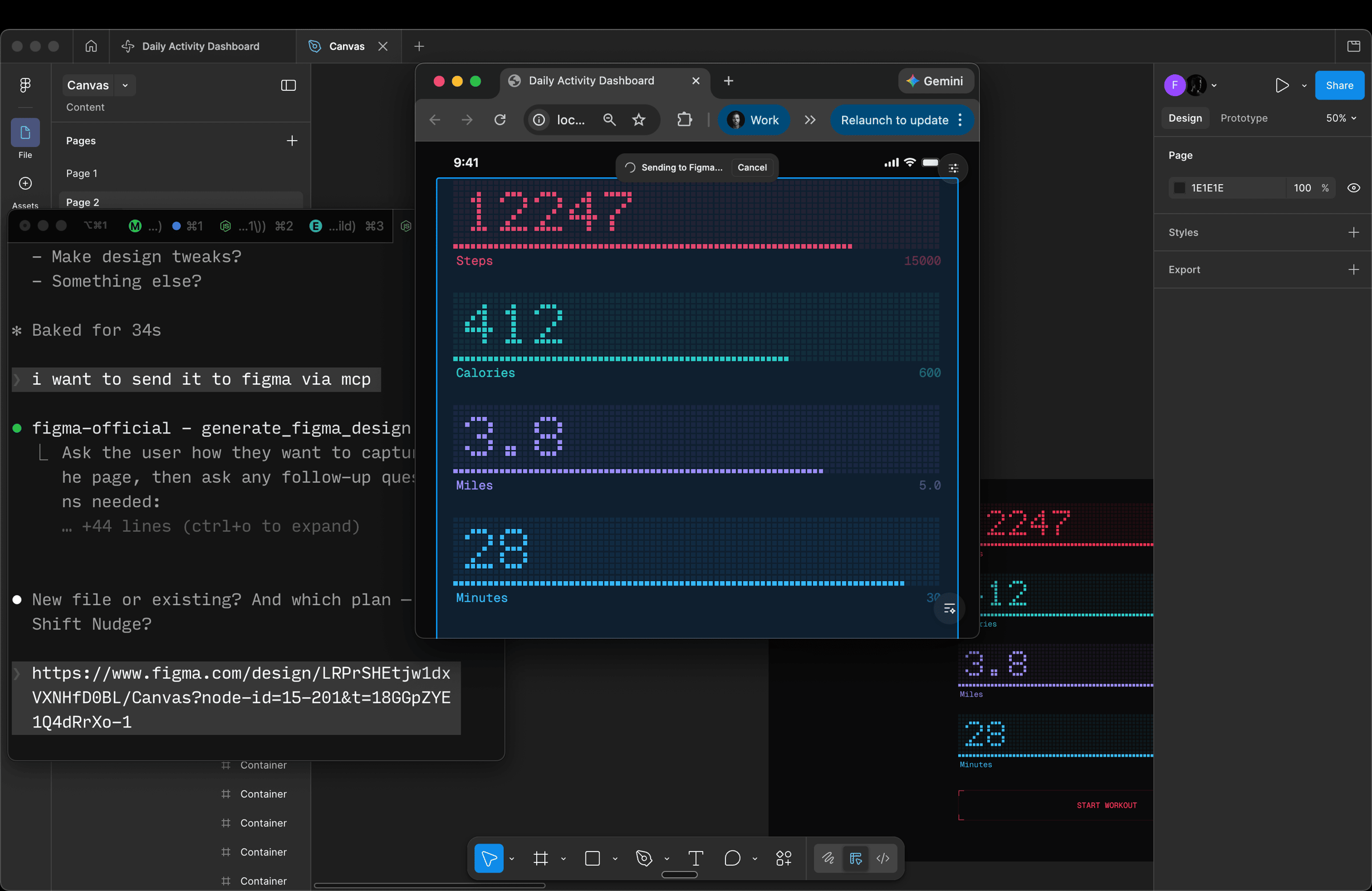 At any point during my Claude Code and browser experiments, I can ask Claude to send it BACK to Figma, using the new Claude Code → Figma capabilities with Figma’s MCP server.