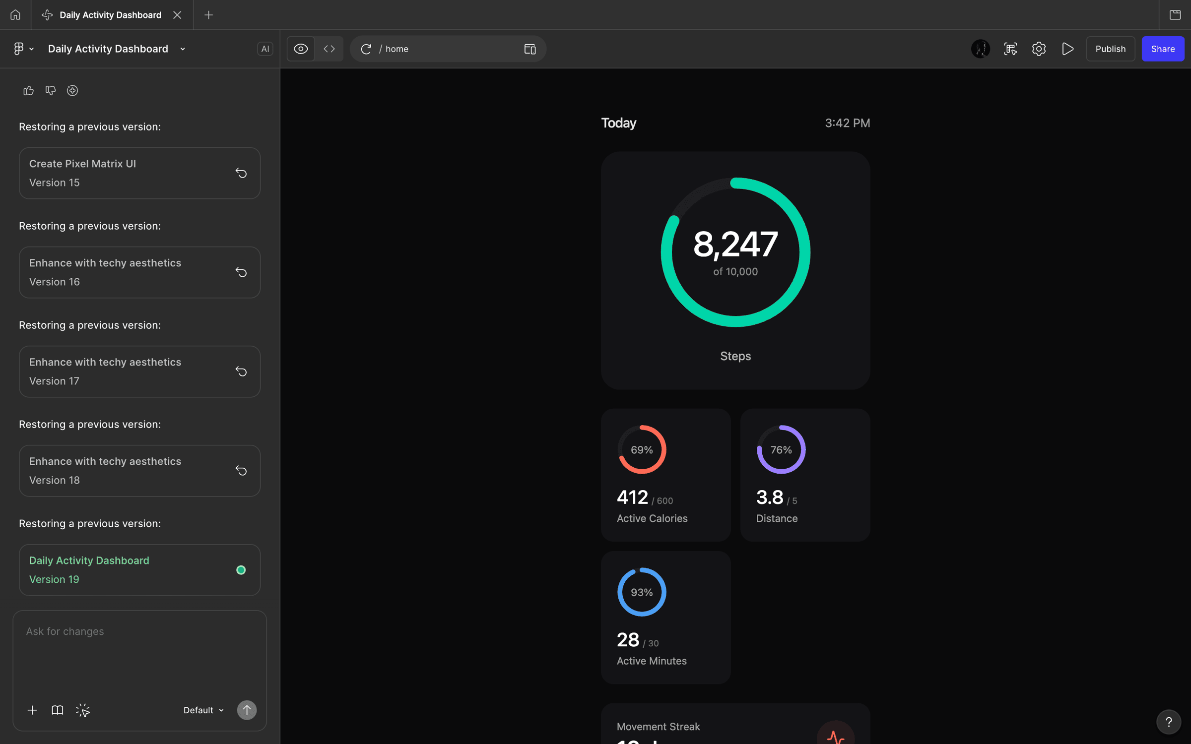 I’ll use an Activity Tracker, but this can obviously apply to whatever you’re working on, whether it’s a small UI card or a full blown project.